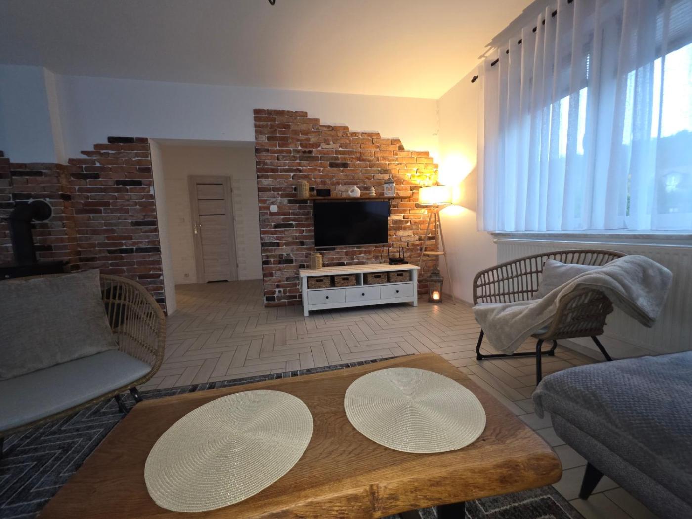 Dom z 3 sypialniami. This holiday home features a private pool, sauna and fireplace. This spacious holiday home features 1 living room, 3 separate bedrooms and 2 bathrooms with a bath and free toiletries. Guests will find a stovetop, a refrigerator, a dishwasher and kitchenware in the kitchen. The holiday home also comes with a barbecue. Boasting a terrace with garden views, this holiday home also features a washing machine and a flat-screen TV with satellite channels. The unit has 5 beds. Dom wakacyjny - 8 osobowy. Powierzchnia pokoju ok.: 140 mkw.
